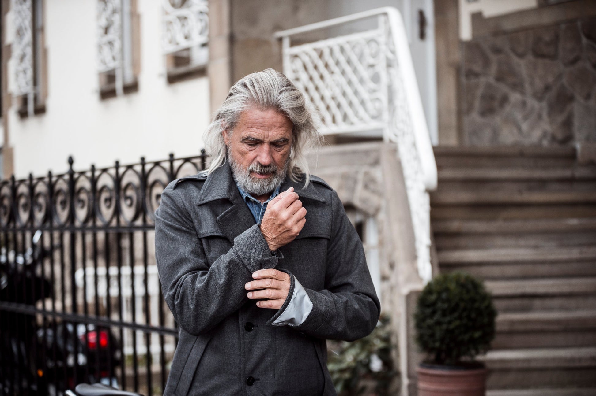 De klassieke trenchcoat was de inspiratie voor onze stadsvriendelijke korte jas Franz. Dit komt tot uiting in de asymmetrische, beschermende voorkant, die doet denken aan het klassieke pak met dubbele rij knopen.