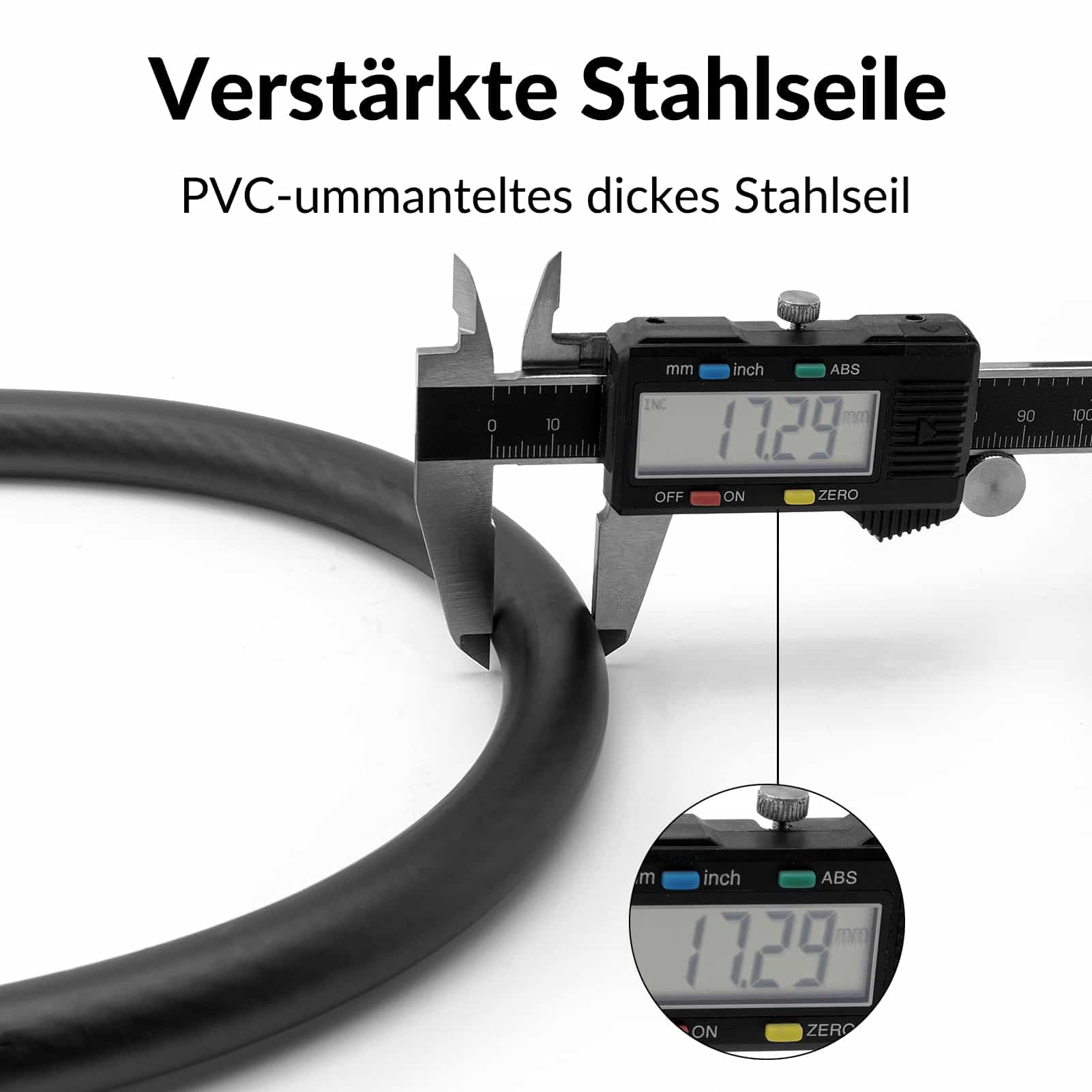 - HOOGWAARDIG MATERIAAL De slotcilinder is gemaakt van hoogwaardig zink, wat duurzaamheid garandeert. De kabel is gemaakt van staal en de PVC-coating biedt extra bescherming.