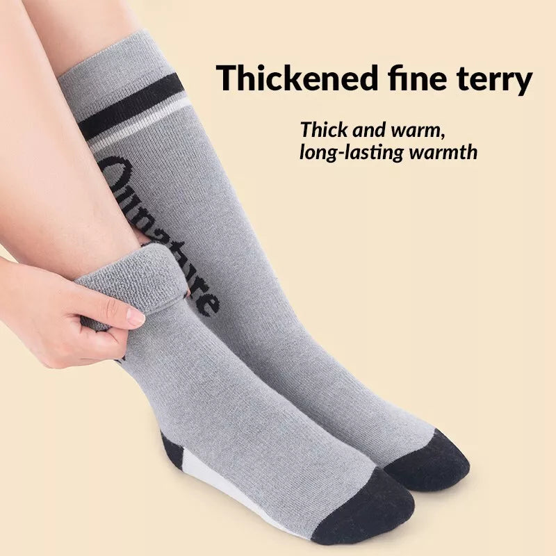 Warmte- en temperatuurbehoud: Skisokken zijn gemaakt van verdikte fijne badstof om warm te blijven en de temperatuur vast te houden, waardoor een continue opwarmervaring wordt geboden voor langdurige ski-activiteiten in de buitenlucht. Uitgerust met een gebreide wolmix, is het zacht en comfortabel, sluit het nauw aan op de huid en is het niet benauwd.